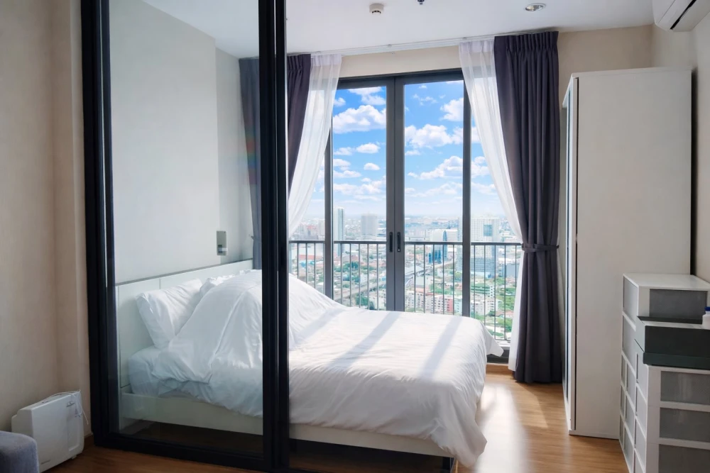 For rent, Ideo Charan 70 - River View, 25th floor, north side, open and airy view. The weather is cool and comfortable. Hurry and reserve now.