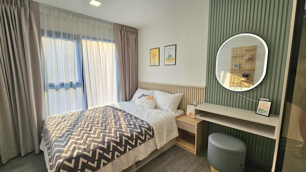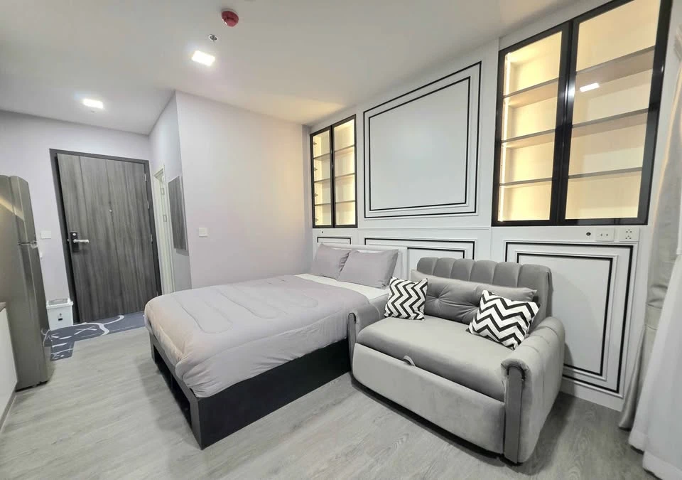 For rent, Cave Town Shift, 8th floor, Bangkok University view, partitioned room, fully furnished, just carry your bags and move in immediately. Book n