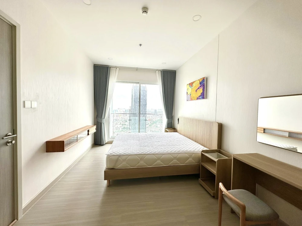 For rent: Wish @ Samyan, 1 bedroom unit with a large bed, premium mattress, and built-in wardrobe – plenty of storage. Don't miss out!