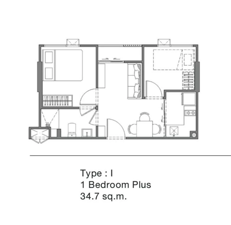 | Room features and room size. | Unit Sizes: 1 Bedroom: 22.50 - 26.42 sq.m. 1 Bedroom Plus: 32.90 - 34.90 sq.m. 2 Bedrooms: 44.70 - 53.60 sq.m